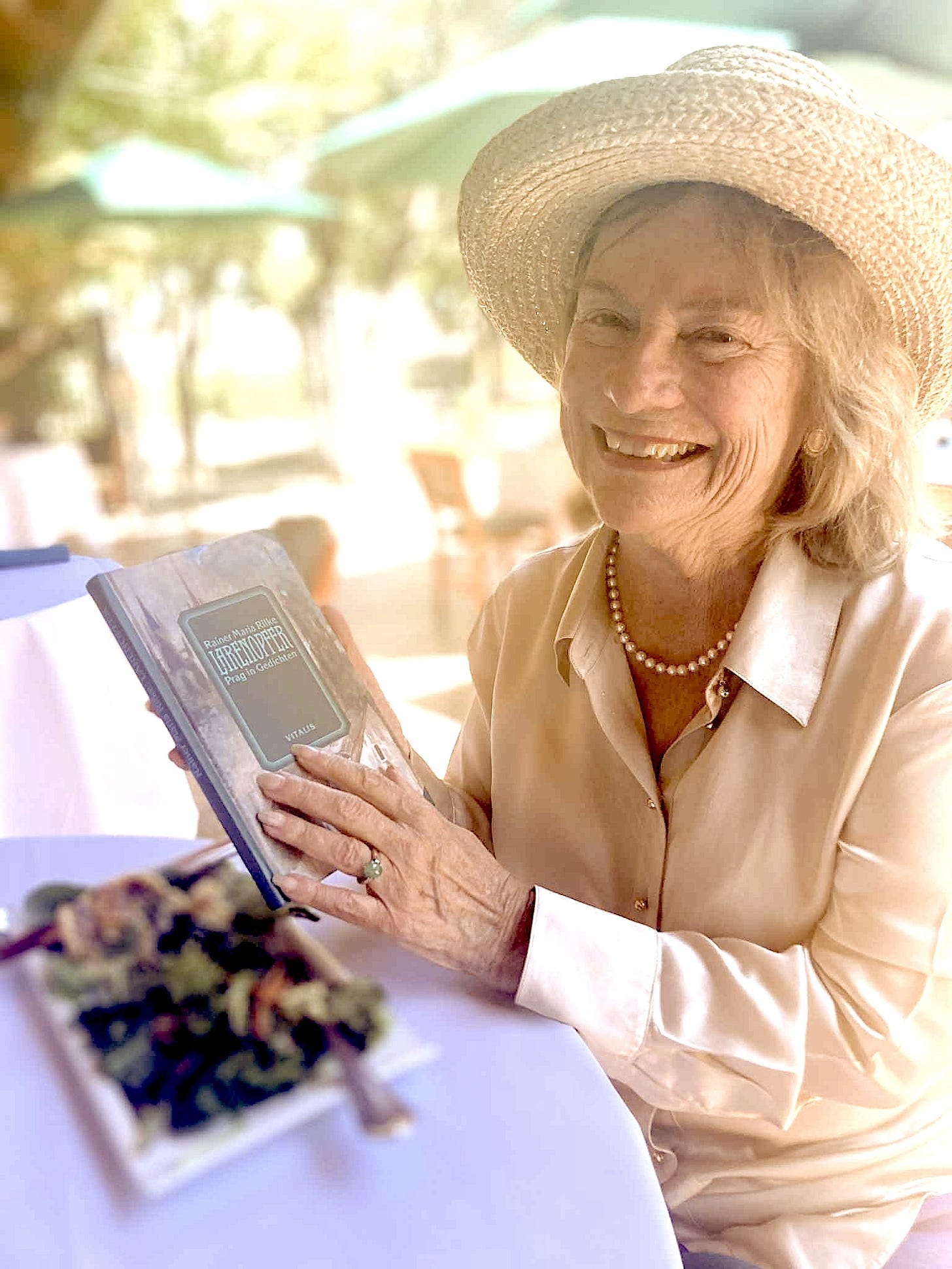 Archivist extraordinaire Elena S. Danielson(at right) kindly took me out to the Stanford Faculty Club for lunch last week. The kindness didn’t stop with the tiramisu. The former director of the Hoover Library & Archives also gave me a new edition of Rainer Maria Rilke‘s “Larenopfer” – to celebrate the 150th anniversary of the poet’s birth. The volume includes ninety of Rilke’s early poems from turn-of-the-century Prague, in German and English. Another treat, a copy of a 1926 letter from Rilke to Leonid Pasternak, the Russian poet’s father, an eminent painter.
