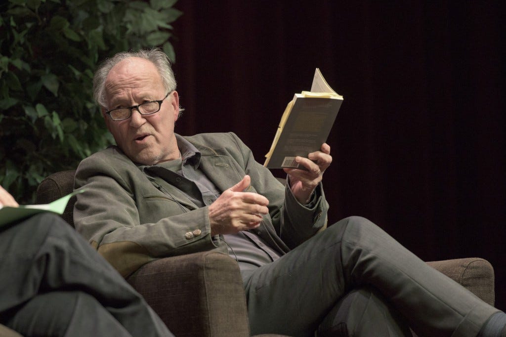 A few gentle reminders from filmmaker Werner Herzog: “A badge of honor is to fail a film theory class.” “Thwart institutional cowardice.” And a few moments about my minutes onstage with the outspoken legend.